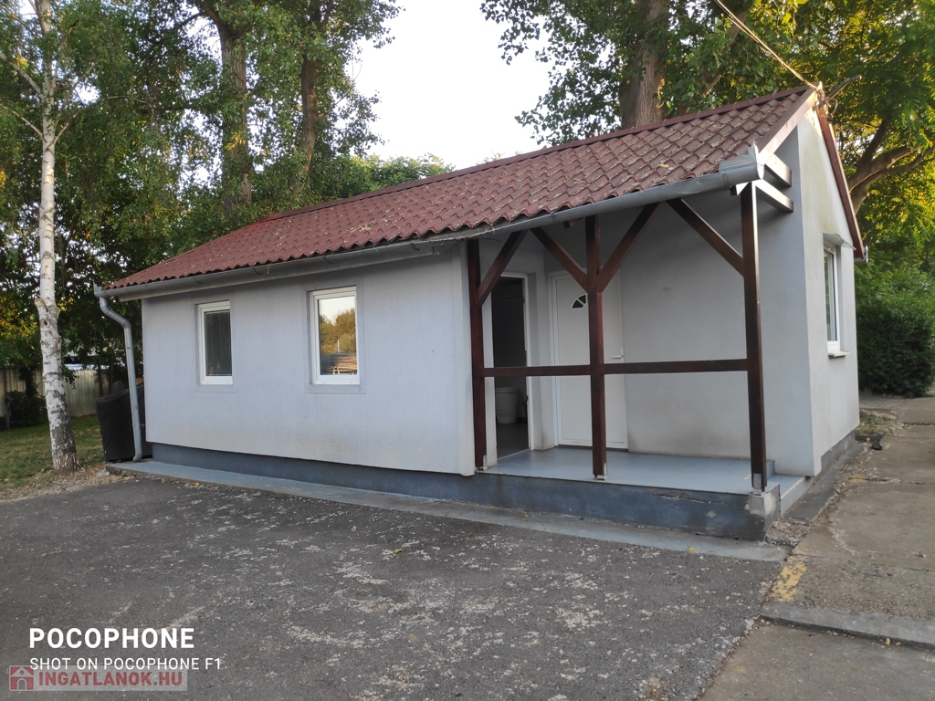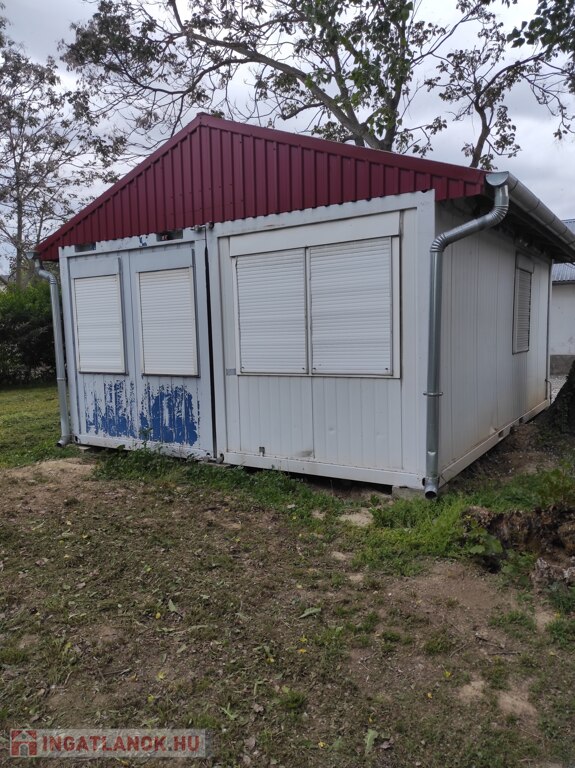 Az iroda épülete kiváló állapotban van: 20 éve épült , cserepeslemez tetővel, könnyűszerkezetes, 37 m2 alapterületű, műanyag nyílászárók reluxával , szürkéskék járólappal ellátva.