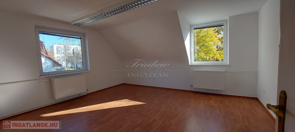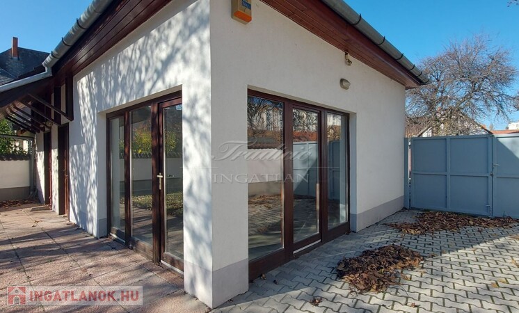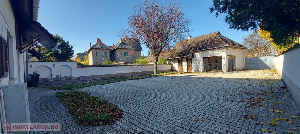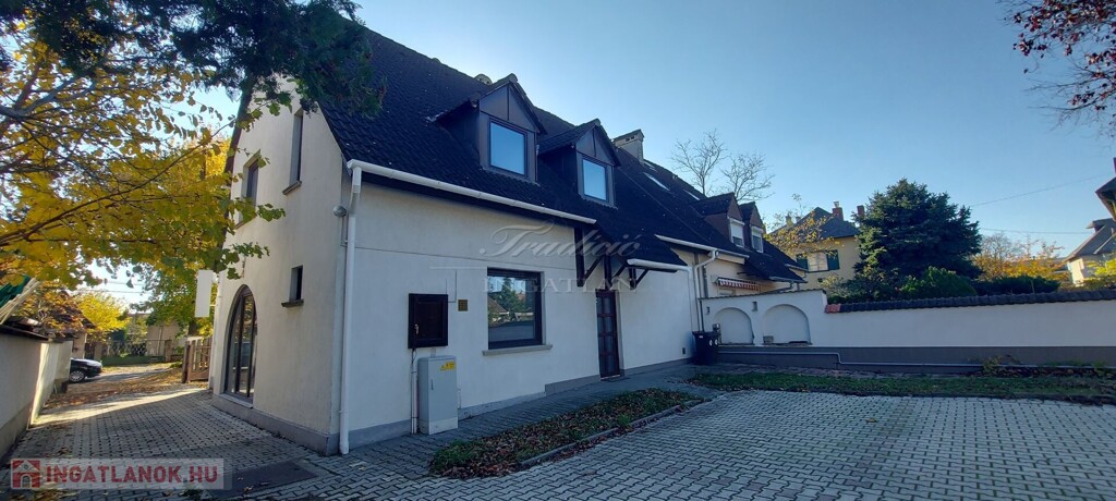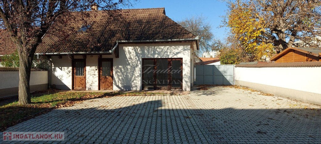 Az ingatlan jelenleg irodaházként működik, de nagyobb család részére is kitűnő életteret nyújt. A telek nagy része térkővel burkolt, ahol 6 autó parkolására van lehetőség. A garázs egy raktárhoz/üzlethelyiséghez kapcsolódik, melynek tetőtere is beépített.