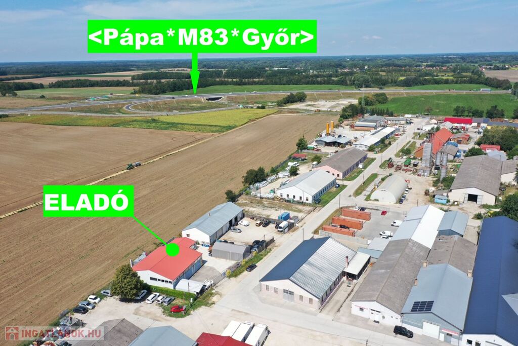 Győr-Ménfőcsanak Ipari parkban, 1.000 m2-es telken, 360 m2-es felépítmény, 295 m2-es gyártó, raktár csarnokkal, 65 m2-es iroda, szociális blokkal, 3x80 amperrel eladó.
