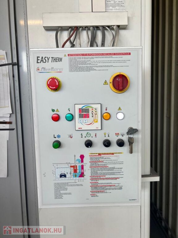 (A csarnokban található 8 m x 4 m-es pár éves fényezőfülke, a csarnoktól elkülönített 15 m2-es gépészeti helyiséggel együtt, amiben a fényezőfülke teljes gépészete található, költség hatékony olajfűtéssel az ingatlan vételára felett igény esetén eladó. A fülke a fotók között az utolsó képeken látható.)
