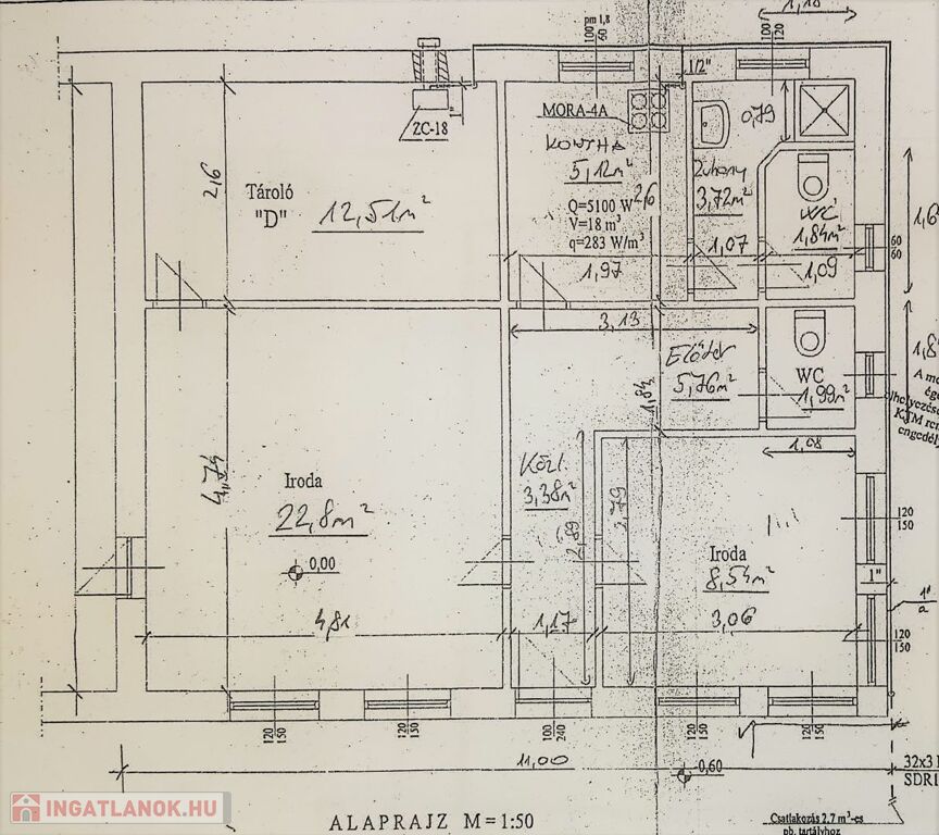 - Tégla falak az irodákban, valamint a szociális helyiségekben, vasbeton födémmel.