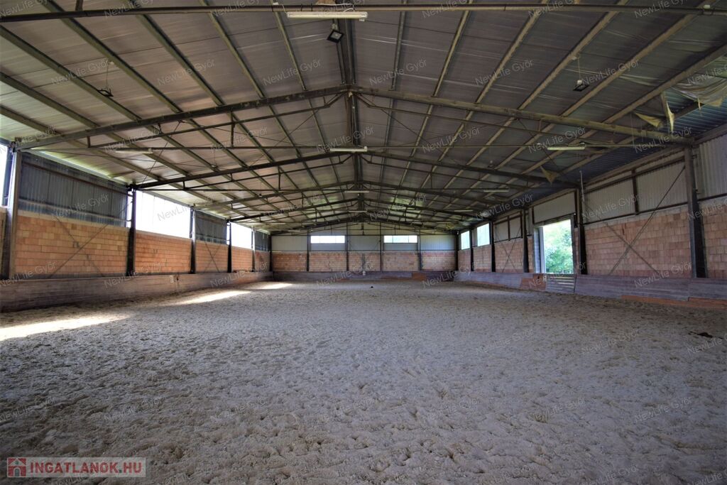 Győr-Moson-Sopron vármegye Gyirmót, eladó külterületi, ipari-kereskedelmi övezetben többcélú hasznosításra alkalmas telephely, fedeles lovarda, legelők