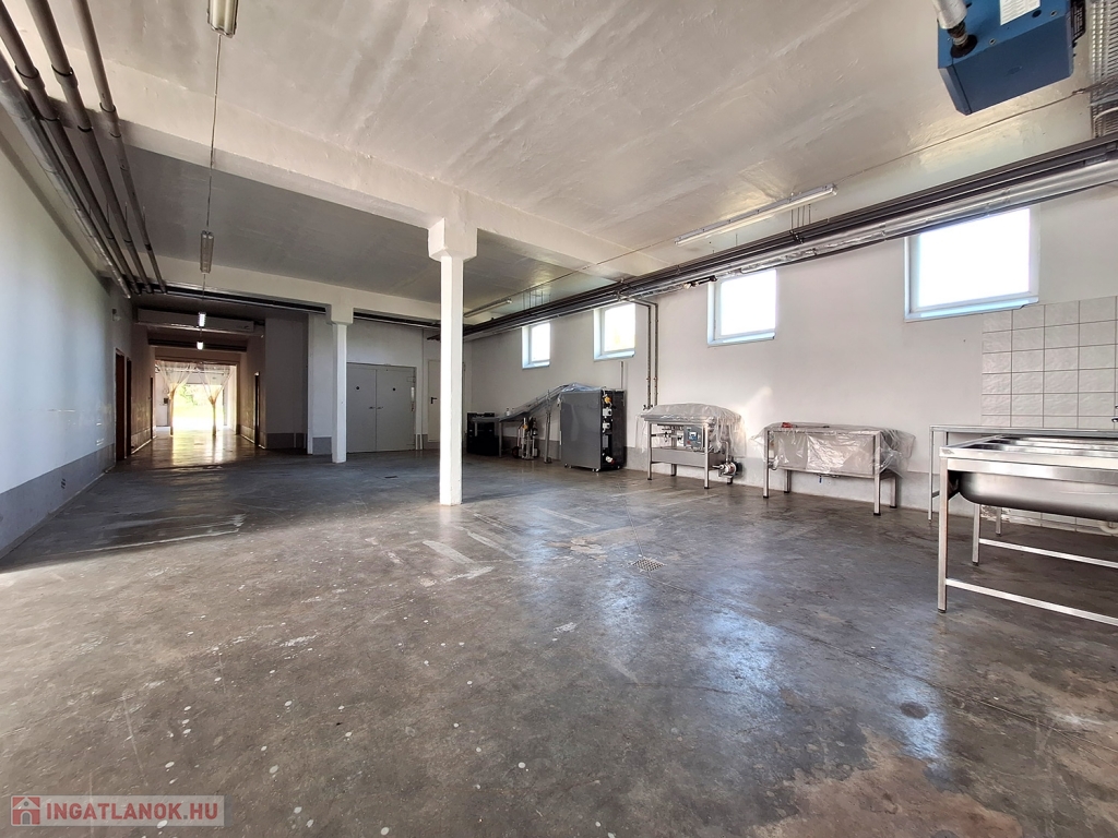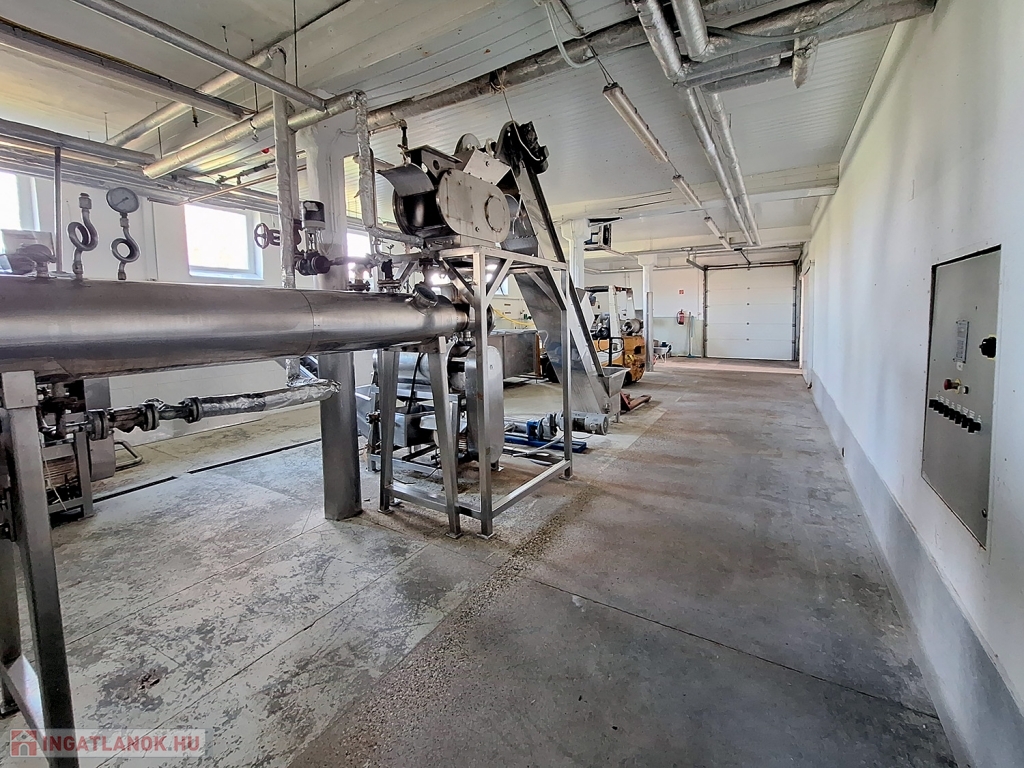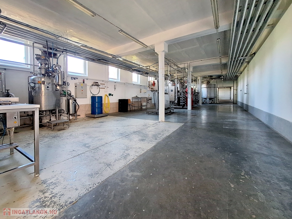 Helyiségei: FÖLDSZINTEN: kisebb-nagyobb üzemi terek, labor, WC blokk, üzemi mosogató, készáru tároló, műhely, kazáhelyiség, EMELETEN: férfi-női WC blokk, zuhanyzó-mosdó-öltöző blokk, iroda, konyha, étkező, hűtött raktár