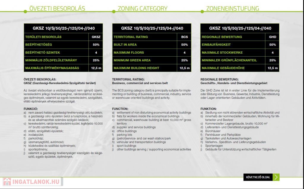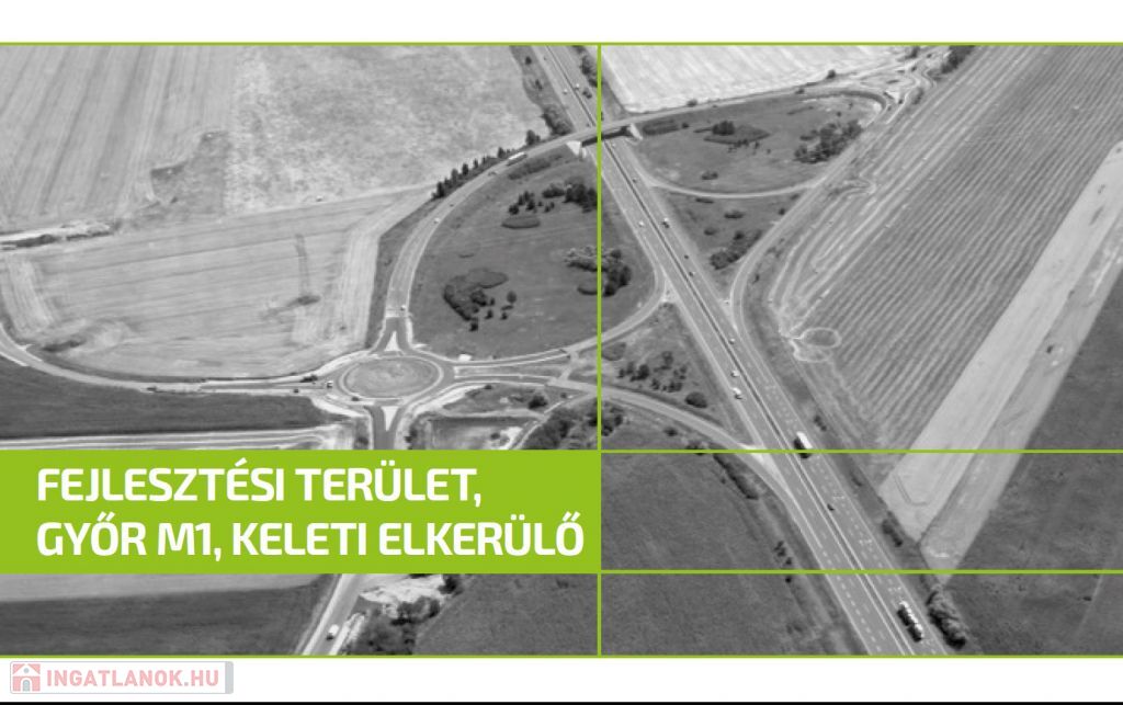 Győr, Ipari területén, az M1-es csatlakozás mellett, GKSZ-es övezetben, 59.205m2-es, 50%-ban (12m magasság) beépíthető terület eladó.