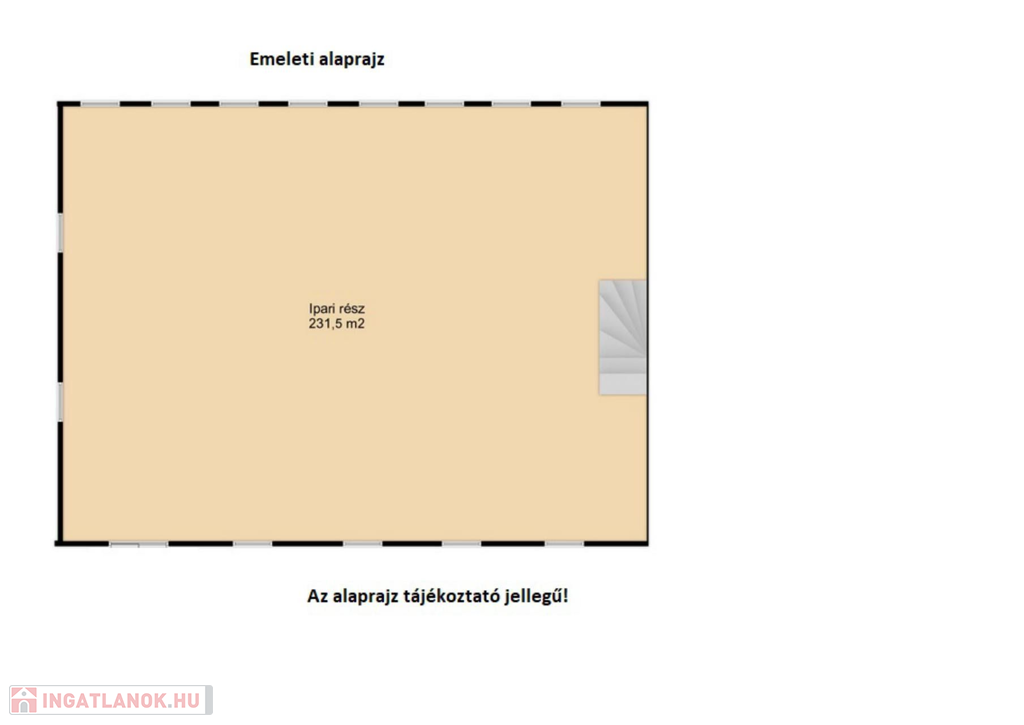 Az épület hasznos területe 816m2, melyből a garzon 24m2. A körbekerített terület 2874m2, ahová két nagykapun lehet bejutni. Az udvaron található továbbá, egy jó állapotú melléképület, mely korábban mázsaházként funkcionált.