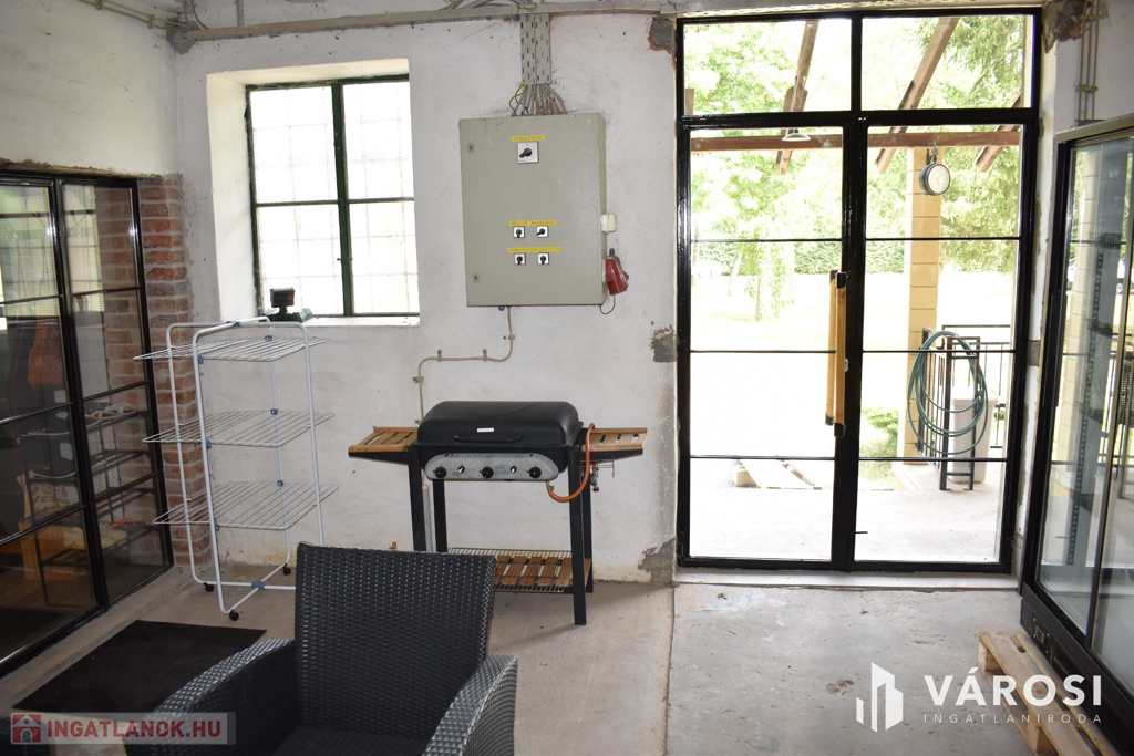 Az ingatlanon található épület a hatvanas években épült, kifogástalan szerkezeti állapotú, tégla falazattal, vasbeton vázszerkezettel. Az épület korábban termény (mag) tárolóként és szárítóként üzemelt. Tulajdonosának köszönhetően, az elmúlt években folyamatosan fejlesztések történtek, melynek során cserélve lett a vízvezeték, a teljes elektromos hálózat, és ’ipari áram’ került kialakításra (3x50A), mely jelenleg lakossági díjszabással üzemel. Alkalmas napelemes rendszer kialakítására. Főépület tetején felújítás történt, bekötésre került a hálózati ivóvíz. A földszinti részen, hangulatos garzon került kialakításra (konyha, fürdő, WC). Fűtése fatüzeléssel, hűtő-fűtő klímával, és egyéb elektromos fűtéssel üzemeltethető. Mosó-, mosogatógép, pára elszívó, hűtő, tv, zene-eszköz helye kiépítve, melegvíz előállítása villanybojler által. Áru rakodásához szükséges nagykapu nyitásához, tartószerkezeti előkészítés készült, tartó pillérek és áthidaló létesítésével. Ezen kívül előkészítésre került néhány ’vizes’ helyiség alapozása, szennyvíz csövezéssel.