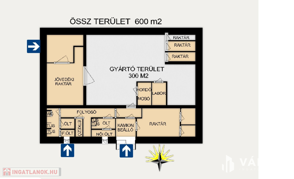 a magasság a munkatérben 5 m, egyéb raktártérben 3 m magas, ipari padló van kiépítve