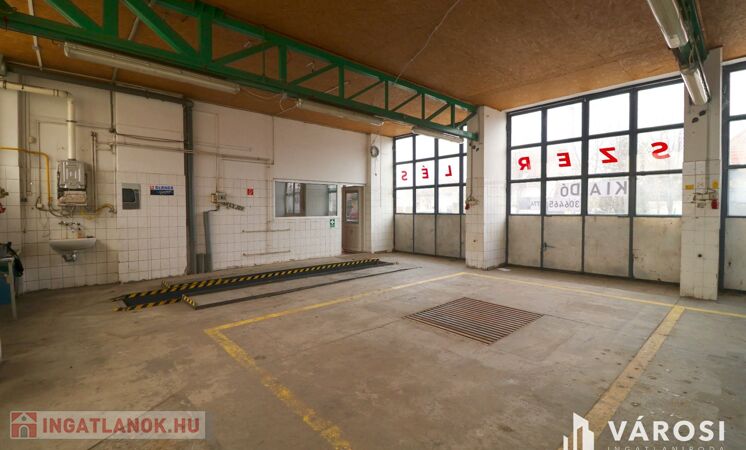 Eladó ~170,00 m2 alapterületű, autószerelő műhely és iroda helyiség szociális blokkal.