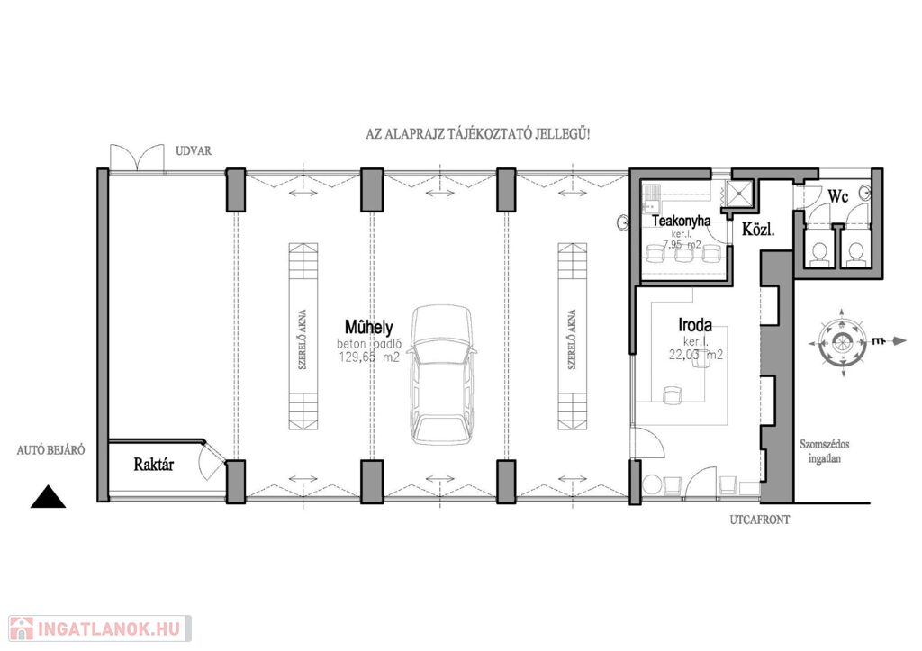 - Autószerelő műhely: ~130,00 m2
