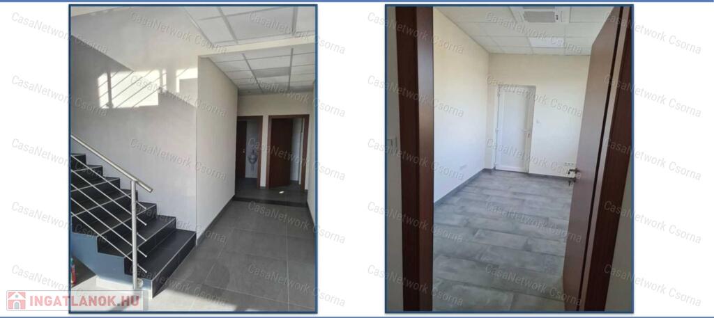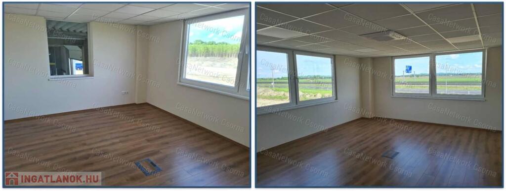 Két szintes, légkondicionált irodaház padlófűtéssel A földszinten egy 60m2-es recepció található. Ezen kívül három irodahelység (részben bútorozott), étkező + konyha (konyhabútorral), és vizesblokkok (szaniterekkel felszerelt -WC, zuhanyzó) is helyet kaptak az épületben. Az emeleten 3 iroda + 1 tárgyaló, WC, archívum, gépház és beépített informatikai szerverterem található. Az ár az áfát nem tartalmazza