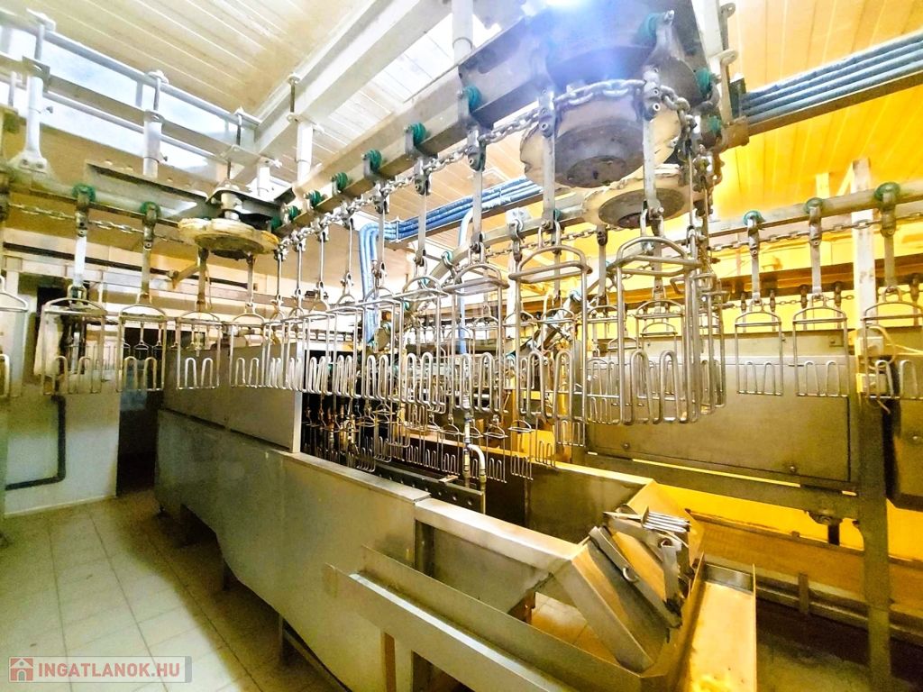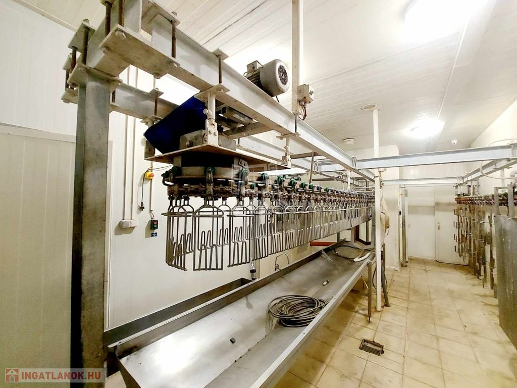 A hőálló 20cm szendvicspanel szerkezetű ingatlan három méteres melmagasággal ,3x120A áramellátással rendelkezik akár 8000 db/nap vágási kapacitással. A fűtésről- melegvizellátásról 2 x 45KW-os gázkazán a vizellátást 80m-es fúrt kút biztosítja, a biztonságról kamerarendszer valamint állandó 24órás portaszolgálat gondoskodik a telephelyen. Lehetőség van az ingatlant az üzemeltető céggel- beszállítói körrel együtt is megvenni, a telek nagysága lehetővé teszi az épületek bővítését, egyéb tevékenység vállalkozás megvalósítására is.