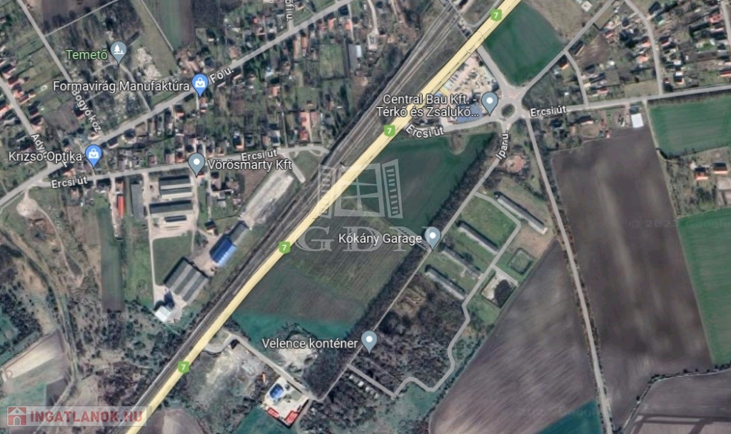 4735. Kápolnásnyéken az Ipar utcában, 7-es számú főútról kőszórásos/szilárd közúton megközelíthető, 18 205 m2 összterületű, 3 helyrajzi számon nyilvántartott, Gksz-6 (Kereskedelmi, szolgáltató) övezetben található kivett telkek céggel együtt eladók.