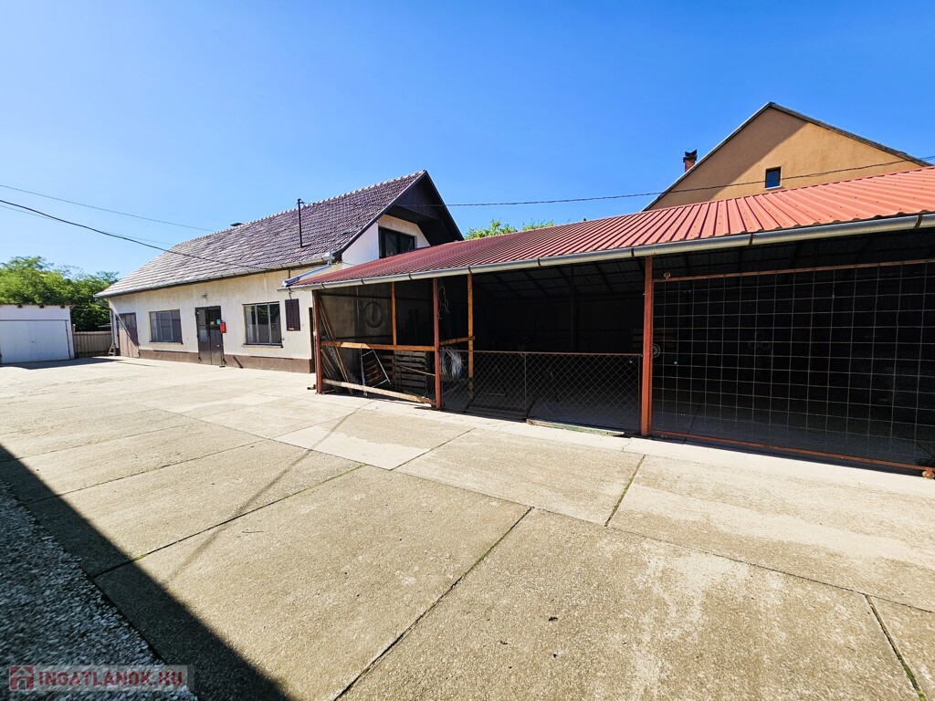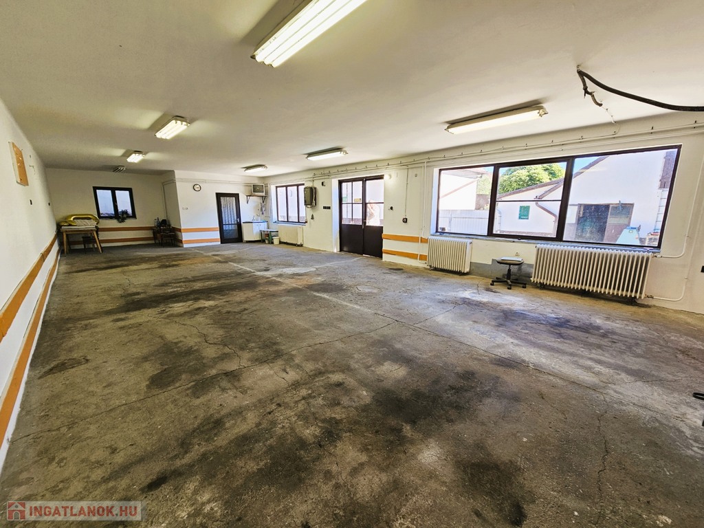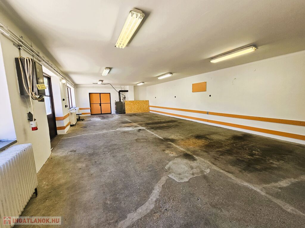 A fűtés vegyestüzelésű kazánnal megoldott. Az épületben egy tágas, 95 m²-es betonaljzatú műhely helyezkedik el irodarész kialakítással, valamint egy 25 m²-es szerelőaknás garázs. Az udvaron további hasznos építmények találhatók: egy 106 m²-es fedett tároló, egy kisebb, 10 m²-es tároló, valamint a telek végében egy 6x5 méteres, trapézlemezből készült ól, tároló.