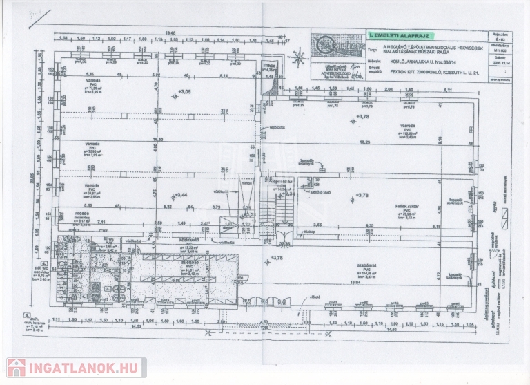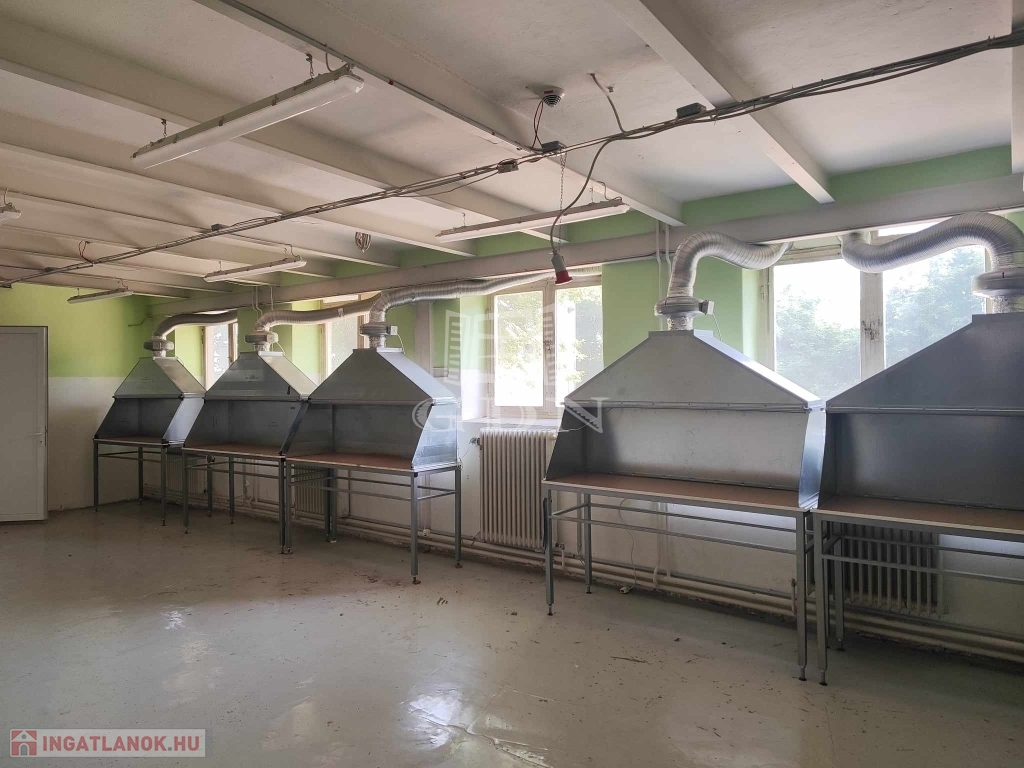 Pécstől 15 km-re Komlón eladó egy 2 szintes, 1213 m2 összterűletű (földszint 584 m2, emelet 629 m2) ipari épület. A tárgyi ingatlan tulajdoni lap szerinti besorolása alapján „Kivett üzemi terület”, a természetben korábban az épületben varroda üzemelt, belső helyiségei jelenleg ennek a funkciónak kialakítottak, kisebb irodák, mindkét szinten szociális blokkok, öltözők, nagyobb összenyitott terek jellemzik.