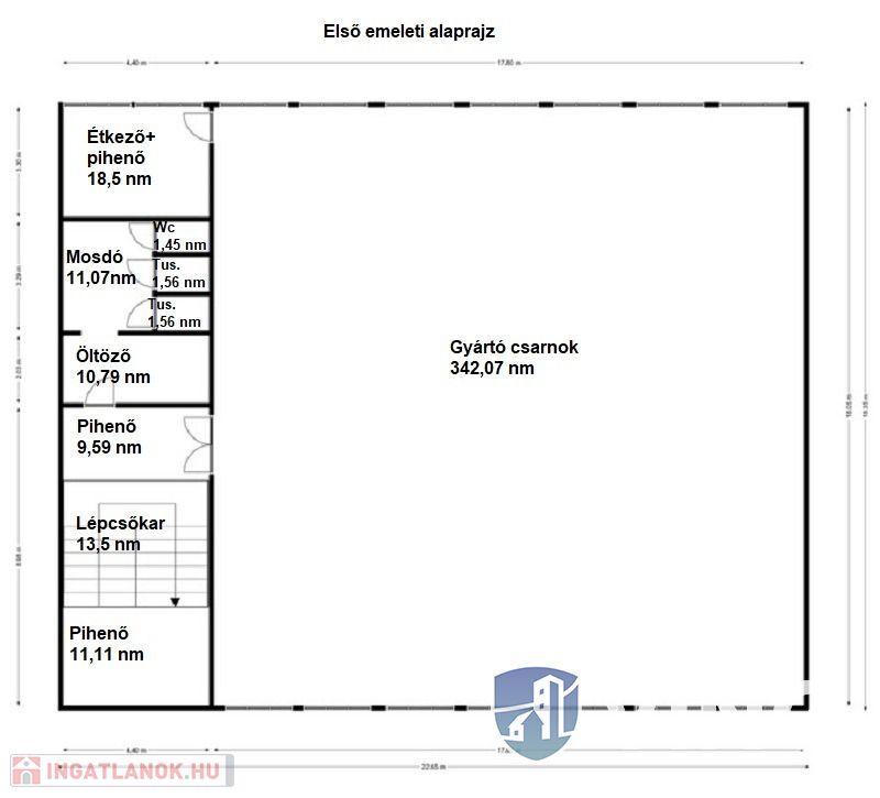 Nagykanizsa Ipari Parkjában eladó ez a közel 1000 nm nagyságú csarnok. A létesítményhez összesen 511 nm-s terület tartozik, melynek jelentős része betonozott, parkolónak kialakított. A könnyűszerkezetes csarnok 2012ben tovább bővült 10 cm vastag szendvicspanel segítségével, az alsó szintre 2 további emelet került kialakításra.