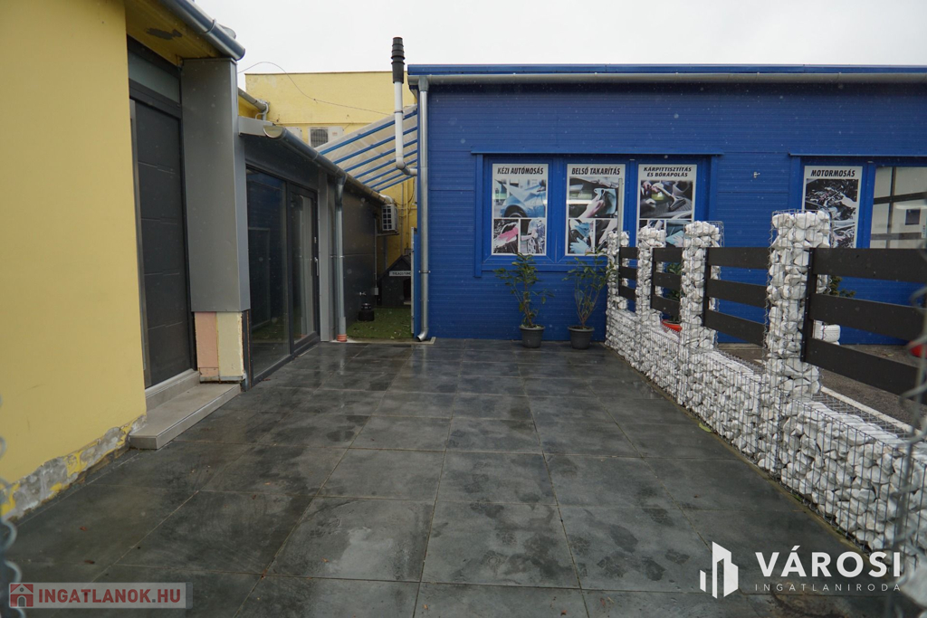 Kozmetika: 2 külön bejárattal rendelkező, tégla és könnyűszerkezetes épület, 2 gépkocsi azonos idejű takarításár alkalmas. (Jelenleg bérbe adva)
