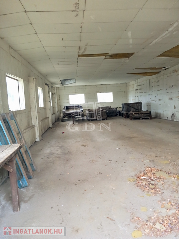 - 1 db régi építésű vasbeton tartóoszlopokon fém szerkezetű, hullámpala tetővel, téglával falazva, dupla vasajtókkal, melyeken nagy méretű munkagépek is könnyedén be tudnak állni ( 17,60 x 12,10 m)