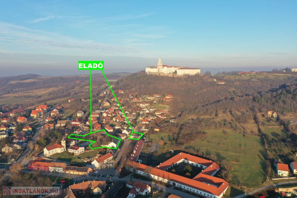 Pannonhalma Fő terén, 3.511 m2-es, 50%-ban beépíthető, településközponti vegyes övezetben elhelyezkedő telken,1.400 m2-es felépítménnyel eladó.