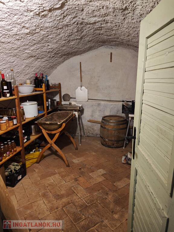 Az alsó szinten található a vendéglátó egység konyha-étkezővel, egy száraz pincével és egy wc-vel. Az 50 m2-es, tágas fedett teraszon, csodálatos balatoni és tájpanorámában gyönyörködve fogyaszthatnak a vendégek.