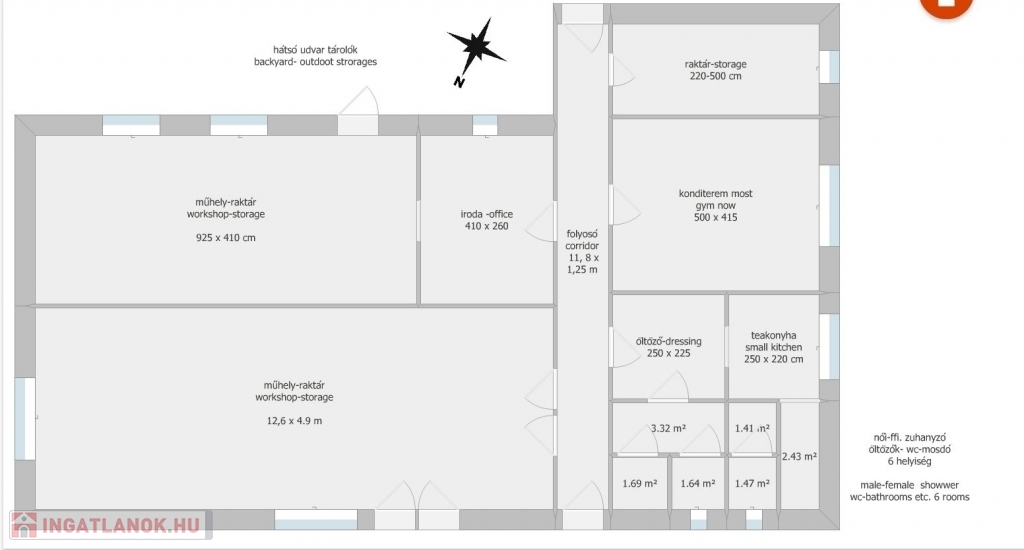 Az épület tetszőleges funkcióra alkalmas, a csatolt alaprajz pontos. 380 V ipari áram rendelkezésre áll.