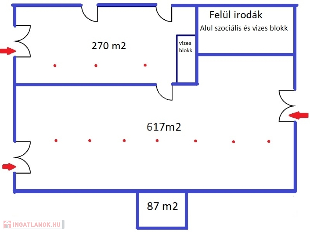 ‣ 3db szintbeli ipari kapu: 2,9m x 3,5m; 4m x 4m