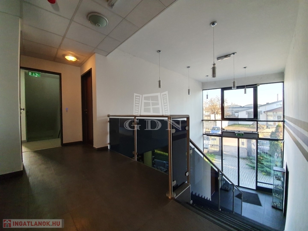 Az épület elosztását tekintve egy utcafronti háromszintes iroda-fejépületből és egy kétszintes, több szekcióból álló, de egybenyitható gyártó-üzemi és/vagy raktár területből áll.