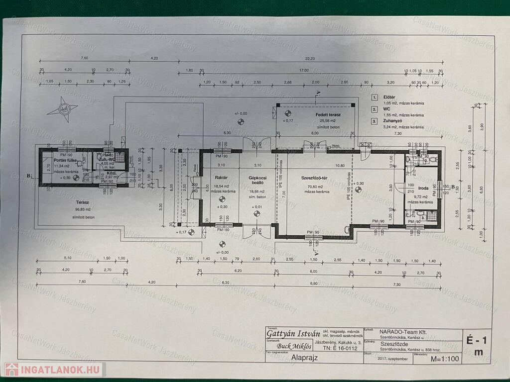 - helyiségek: 1 raktár, 1 előtér, 1 műhely, 1 zárt garázs, 1 közlekedő, 1 iroda, 1 fürdőszoba, 1 WC, 1 fürdőszoba+ WC, 1 portásfülke, 2 terasz ,