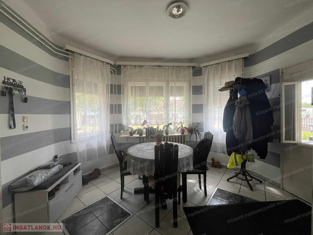 A 120 m2-es ház előteréből egy folyosóra lépünk, ahonnan két külön nyíló szoba, fürdőszoba WC-vel, konyha és a konyhából egy ablakos kamra nyílik. A ház dupla terasszal rendelkezik.