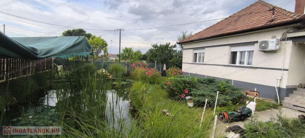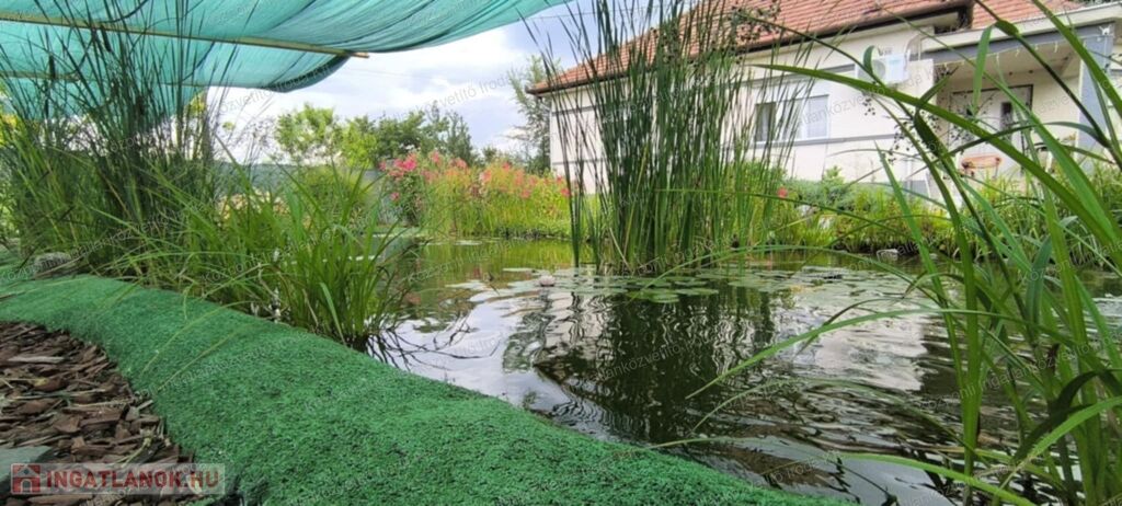 A kertet termő gyümölcsfák (szilva, többféle körte, cseresznye), árnyékot adó dió és akácfák, valamint egy 50 m3-es halakkal telepített tó díszíti. A kert öntözése fúrt kútról megoldható.