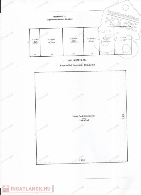 A telken található még egy 150 m2 alapterületű hűtőház.
