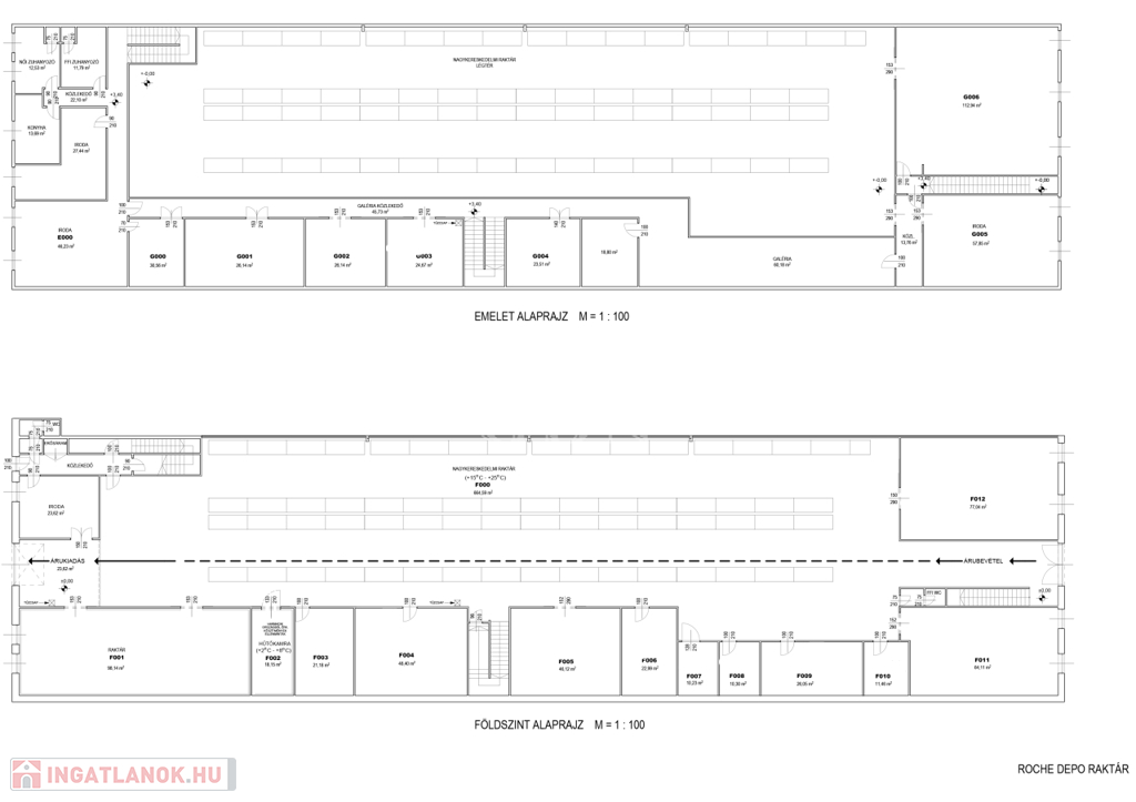 • Két szintes kialakítás, amelyben irodák, tárgyalók és raktárak találhatók, valamint műhely vagy üzem is könnyen kialakítható