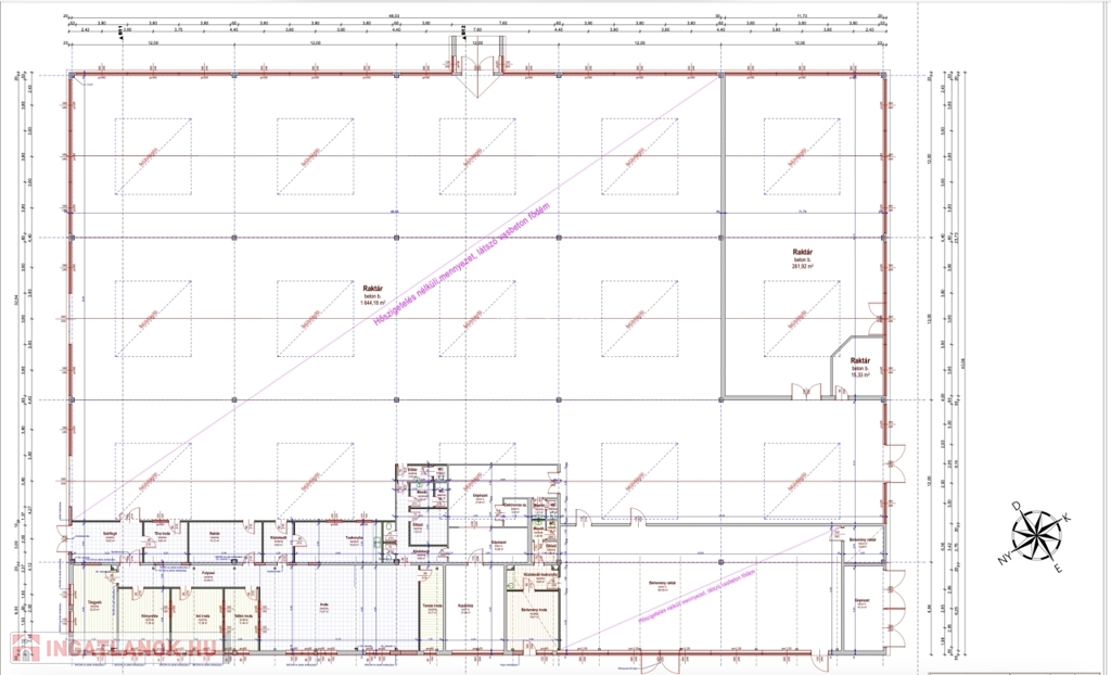 A raktár jelentős része fűtetlen, azonban egy kisebb, ~ 250 m2-nyi csomagoló rész klímaberendezéssel fűthető vagy akár hűthető.