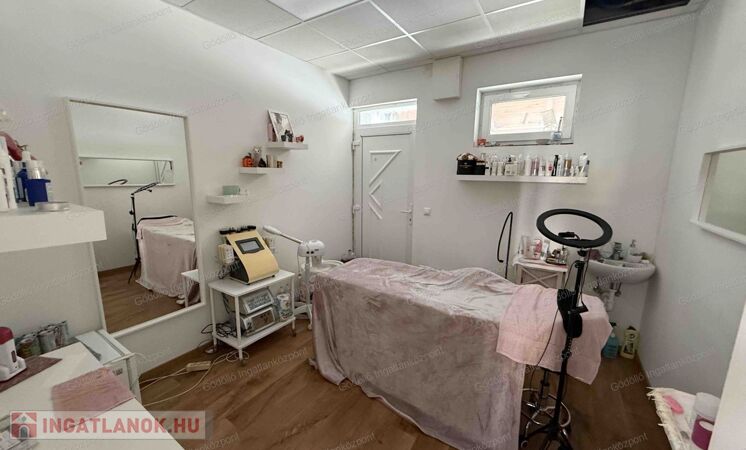 Az üzletben kialakításra került egy váró, két helyiség, kis teakonyha és külön mellékhelyiség.
