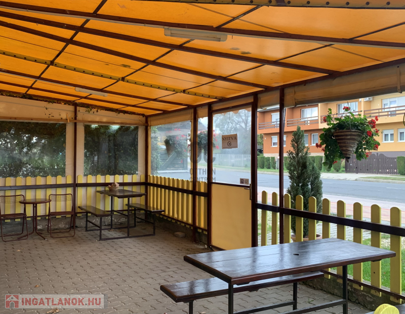 Az épület kialakítása nagyon jó, vendégek részére fedett terasz van kialakítva, az üzletbe belépve a kiszolgáló helyiségbe lépünk, innét jutunk el az előkészítőbe, hátsó részben a dolgozóknak kialakított öltöző, vizes blokk és tároló található, a vendégek pedig az udvarról tudják a vizes blokkot megközelíteni.