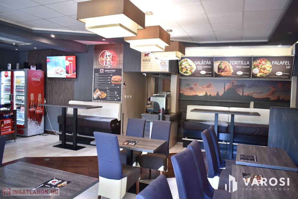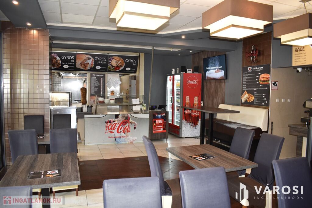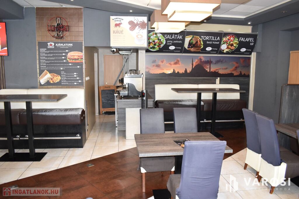 Eladásra kínálom Békéscsaba város belvárosi részén a Csaba Center szomszédságában található 1980-as években épült és 2015-ben teljesen felújított, tégla falazatú, 139 m2-es üzlethelységet. Az üzlethelység jelenleg étteremként van üzemeltetve, amelyhez egy 86 m2-es hangulatos terasz is tartozik. A felújítások során a teljes elektromos hálózat fejlesztése ( 3x50 A, ipari áram), a hidegburkolatok, a nyílászárók cseréje is megtörtént a legmodernebb fotocellás, alumínium nyílászárókra. Az üzletben továbbá ki lett alakítva egy mai kornak megfelelő, elegáns vizes blokk (férfi, női WC) is. Az üzlet kialakítása is kiváló, mivel a sétáló utcáról mindössze egy üvegfal választja el a 18 m2-es kiszolgáló részt és a közel 52 m2-es vendéglátó részt. Ezen egységek mögött lett kialakítva egy jól felszerelt 26 m2-es konyha, személyzeti öltöző, fürdőszoba, raktárhelységek, előkészítő és hűtők. Az üzlet fűtéséről egy Westend gázkazán és padlófűtés gondoskodik.
