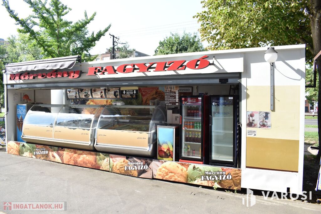 Eladásra kínálom Békéscsaba város Lencsési lakótelep részén ezt a 30 m2-es üzlethelységet. Az üzlethelység évek óta és jelenleg is fagylaltozóként van üzemeltetve. A Békéscsabai emberek nagyon szeretik, mivel tudják, hogy a Márvány cukrászdák a minőséget képviselik. A fagylaltozóhoz tartozik továbbá egy 20 m2-es iroda és raktárhelység is, amely a mellette lévő lépcsőház földszinti részén található. Az üzlethez tartozik továbbá egy 82 m2-es hangulatos terasz rész is, amely akár rendezvények lebonyolítására is kiválóan alkalmas. Az üzlet teljes elektromos hálózat fejlesztése ( 3x32 A ). A fagylaltozó mellett szinte minden megtalálható és a környéken lakók nagyon szeretik.