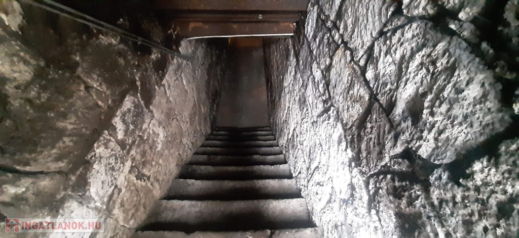 Ami nem látszik, az a kétszintes pince, amelyben szellőző ablakok biztosítják a tiszta levegőt. 15 lépcsőfok vezet lefelé és két oldalra ágazik el a pince, gyönyörű szép faragott kő és tégla boltozatú.