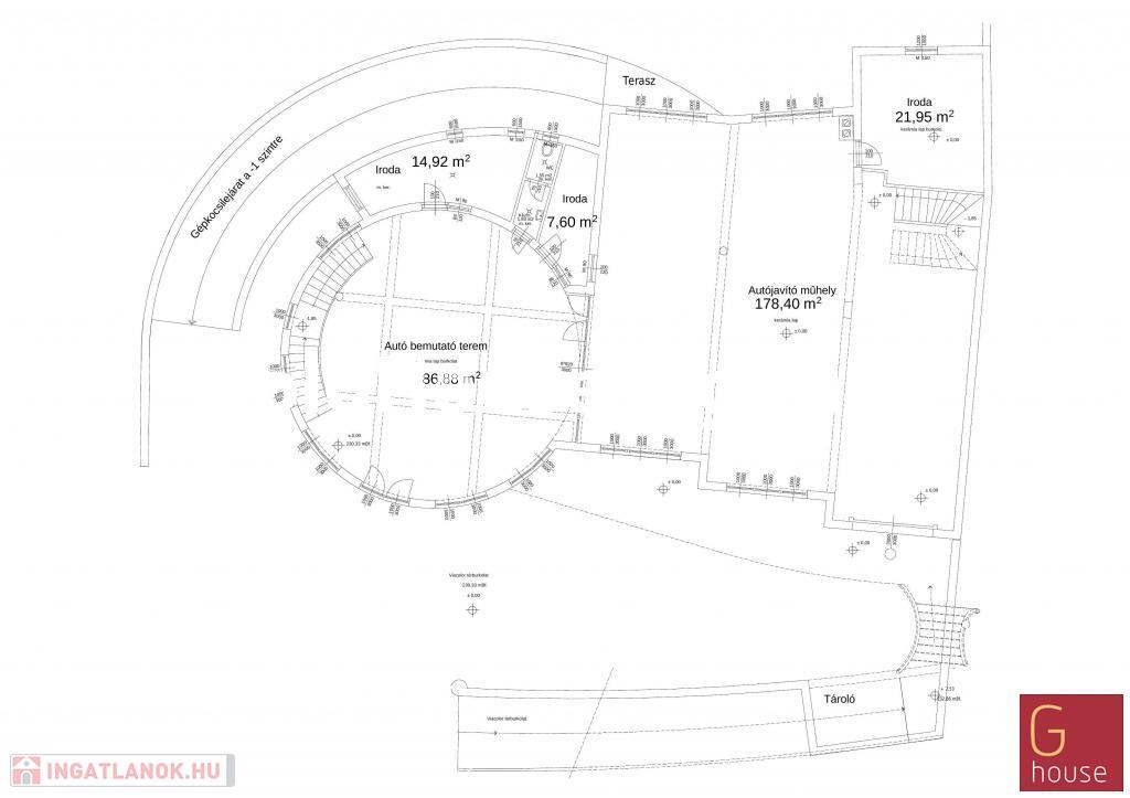 A földszinti és ahhoz kapcsolódó alagsori részén, összesen 910 nm, melyhez az alagsorban 300 nm-es raktár kapcsolódik. Földszinti kézi raktárral, két irodával és személyzeti helyiséggel (zuhanyzó, konyha) felszerelt, valamint mindkét szintjén mellékhelyiség is kialakításra került. Az üzlet előtt igényes, épített előkert és tizenkét férőhelyes saját parkoló fogadja az ügyfeleket. Az üzlet áruforgalmát több teherautó részére elegendő pakolási zóna és széles lehajtó rámpa segíti.