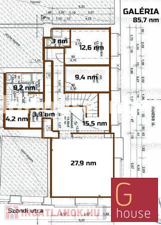 Galéria (85,7 nm): 28 nm-es helyiség, iroda, 3 helyiség, 2 vizesblokk