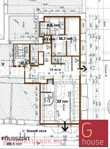 Földszint (89,5 nm): recepció, 2 vizesblokk, 1 helyiség