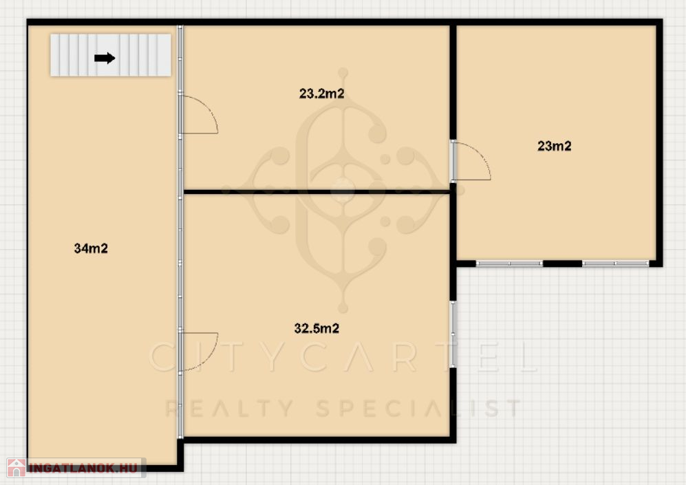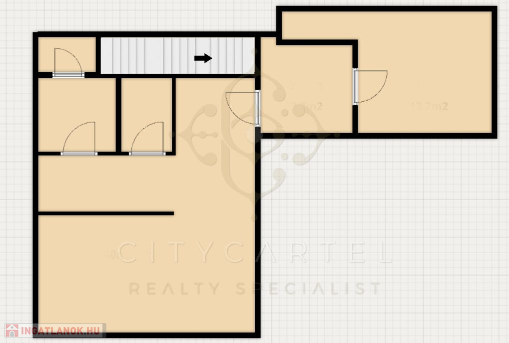 Pince: 72 nm – konyha, öltöző, tároló, 2 toalett