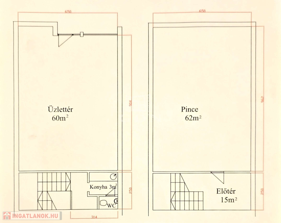 Földszint (60 m²): Utcafronti üzlettér, teakonyha, mosdó