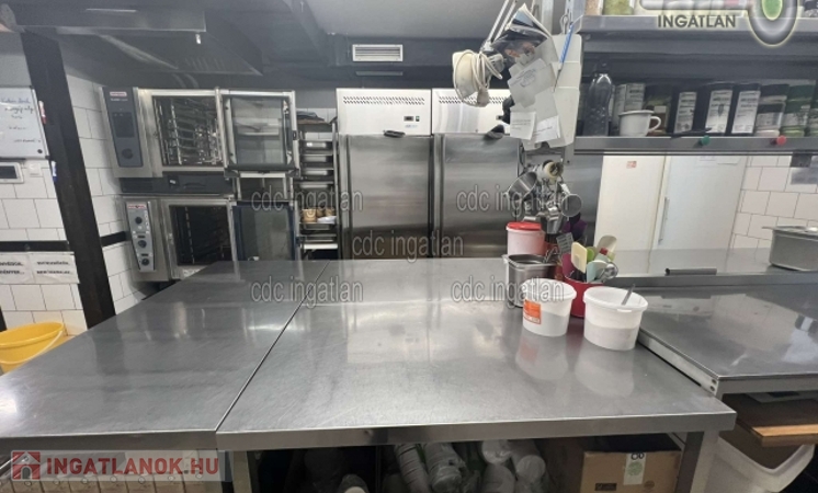 EGYEDI LEHETŐSÉG! TERMELŐKONYHA ÉS ÉTTEREM TULAJDONJOGA ELADÓ! VII. kerületben kínáljuk megvételre ezt a földszinti, utcai nézetű, üvegportálos, 214 m2-es, két szintes, 2 bejáratos, cirkófűtéses, világos, 2017-ben teljes körűen felújított üzlethelyiséget. Az ingatlan 2 szintes, szintenként 107 m2-es, vasbeton szerkezetű monolit vendégfödémmel lett létrehozva. A földszint 1000 adagos termelőkonyha és kiszolgáló helyiségei. Az emelet klimatizált, kb. 40 fős étterem, iroda, gépház. Ipari áram 3x50A, ipari gáz 16 m3-es gázóra és külön vízóra, HikVison kamerarendszer, riasztórendszer. A szagelszívást 6 m2 elszívóernyő biztosítja, a tető fölé kivezetett elszívó rendszerrel, légtechnikai rendszerrel az emeleti gépházban. Fűthető is a levegő. A légtechnika az ár részét képezi. Az étteremben lévő ingóságok, eszközök és berendezések, konyhai felszerelés igény esetén külön megállapodással megvásárolhatók. Az ingatlan értékesítése fordított ÁFÁ-val könnyedén kivitelezhető. Irányár: 189.900.000 Ft.