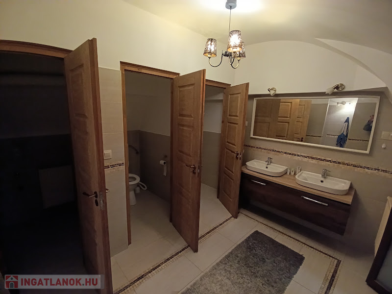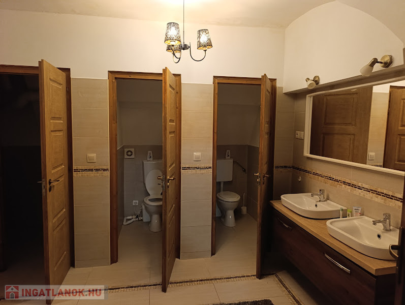 Mosdóhelyiség két külön bejáratú WC-vel és két zuhanyzóval