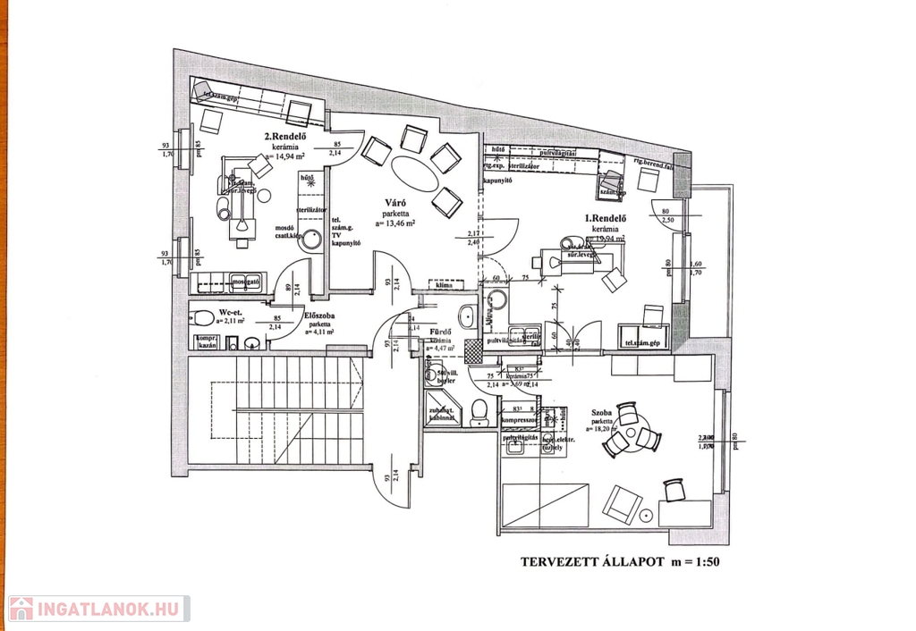 - 1. emelet | 3 szoba + tágas hall (páciens váró)