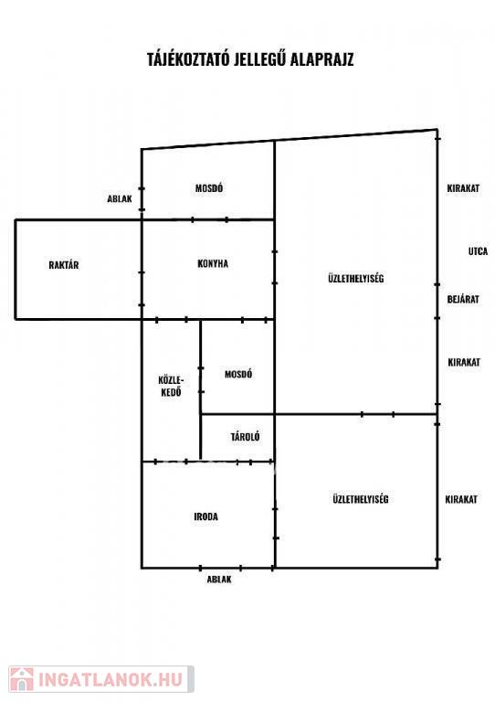 A tágas és világos eladótér önmagáért beszél, hátul pedig szintén világos iroda, mosdók, tároló, konyha és raktár található. A praktikus elrendezés az üzemeltetők álma.