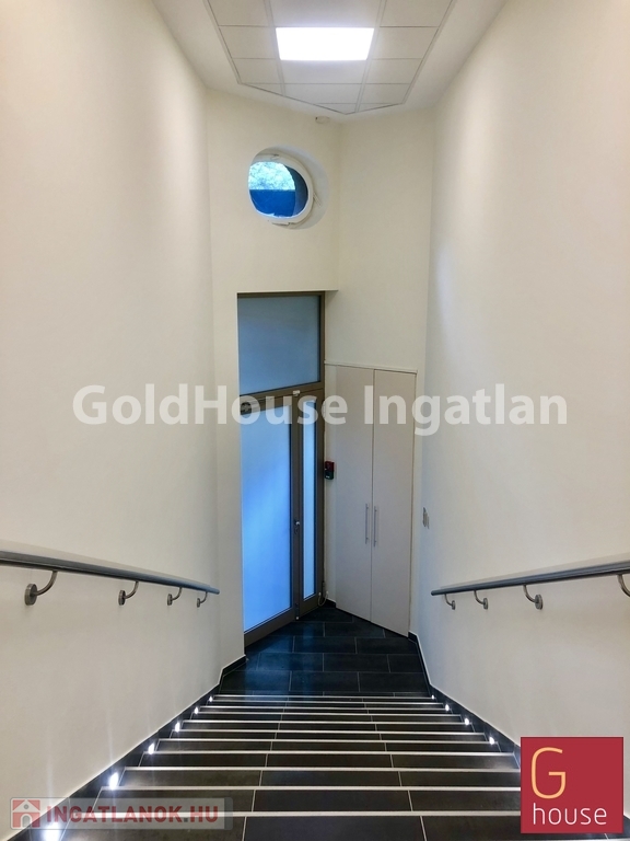 Az iroda egyrésze félszuterén valamint magas földszinten helyezkedik el, több bejárattal is rendelkezik.