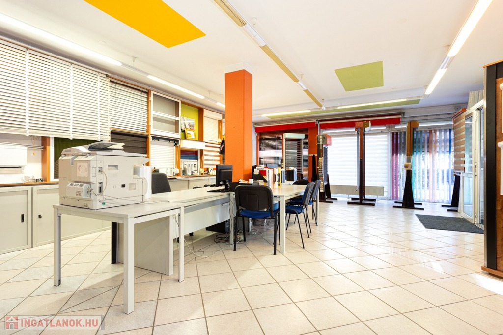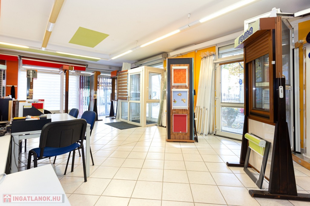 Közvetlenül a bemutatóterem mellett egy 55 m²-es üzlethelyiség teremgarázzsal szintén eladó, melynek ára 55 millió Ft.