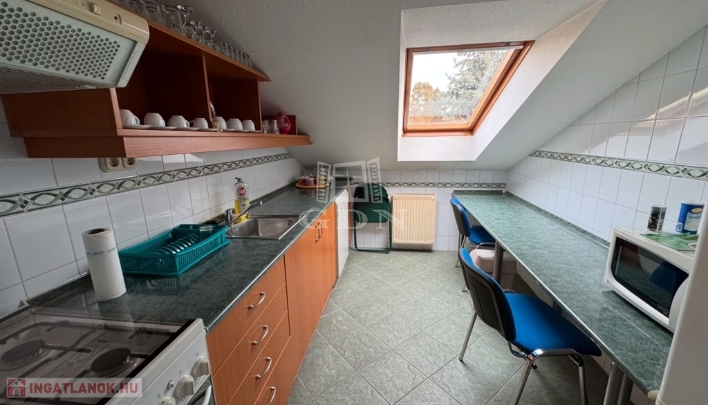A tetőtér felújított állapotban van, amely alkalmas lakhatásra vagy munkásszállásként történő hasznosításra. A helyiségek praktikusan és célszerűen lettek kialakítva, így a raktározás, gyártás-előkészítés és irodai munkák is gördülékenyen végezhetők.
