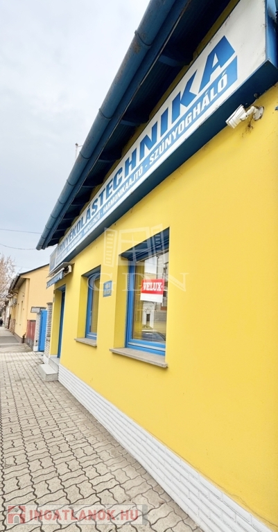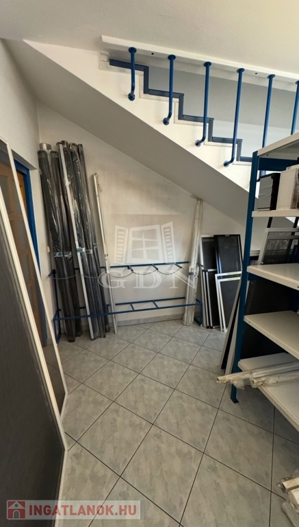 • Épület: Az utcafronti, földszintes épület oldalhatáron helyezkedik el, jelenleg árnyékolástechnikai vállalkozás működik benne. Az udvar hátsó része (körülbelül a telek fele) acélszerkezetű, polikarbonát héjalású tetővel fedett, amely ideális raktározási célokra.